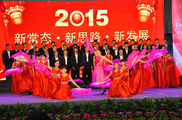文艺演出正式开始前,集团董事局简兴福主席宣布了集团2015年新一届管委会成员构成,11位管委会成员实现了老中青三结合。集团公司王洪总裁代表集团领导班子致新年贺词,肯定了2014年全体员工为公司发展做出的贡献,并鼓励全体员工2015年坚定信念、再创辉煌,向全体员工及家属致以亲切的问候和诚挚的祝福;集团董事局简兴福主席为30年、20年工龄员工颁发证书和纪念品。